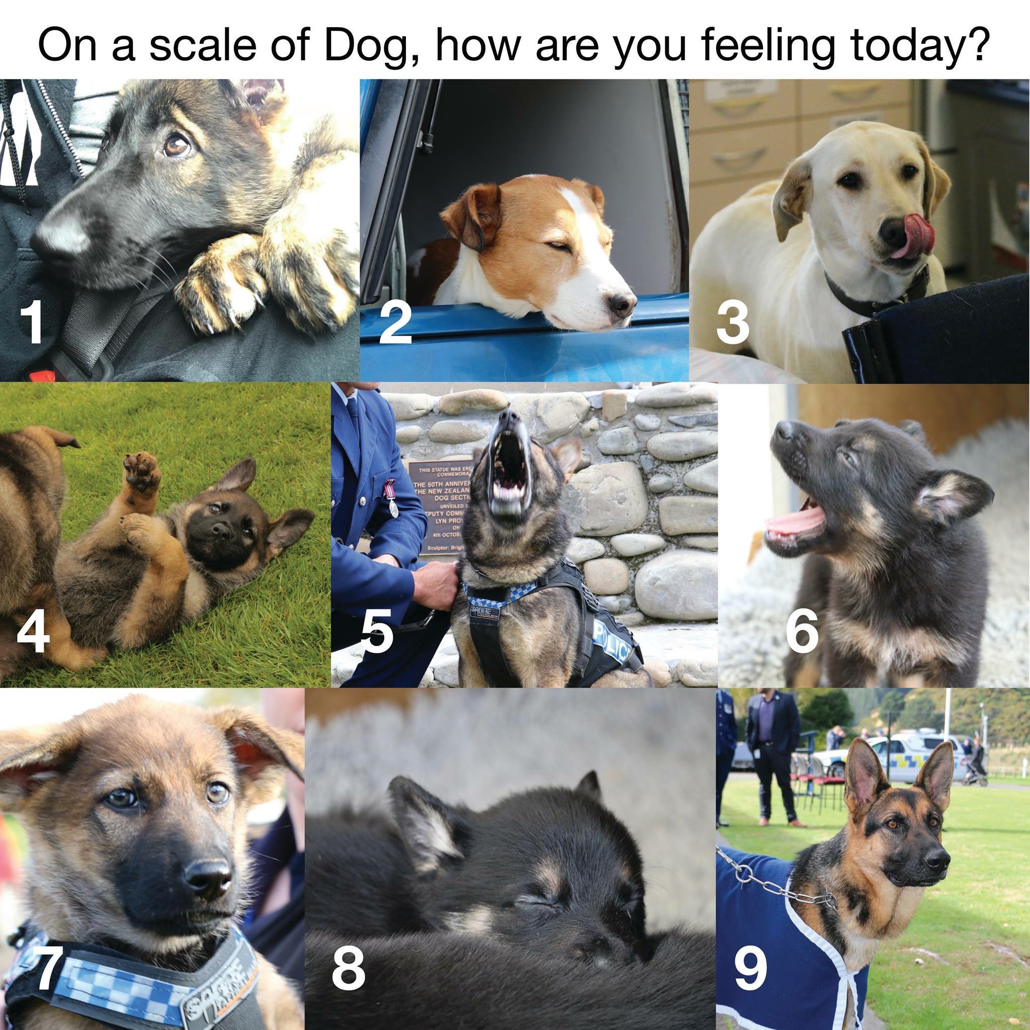 Newzealandpolice On A Scale Of Dog How Are You Feeling Today 1 2 3 5 6 9 856 Likes Newzealandpolice Solid 9 Here Today Nz Police Are A Goldmine For This Stuff Police Meme On Me Me