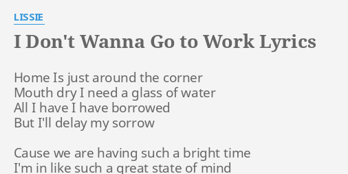 Lissie I Don T Wanna Go To Work Lyrics Genius Lyrics