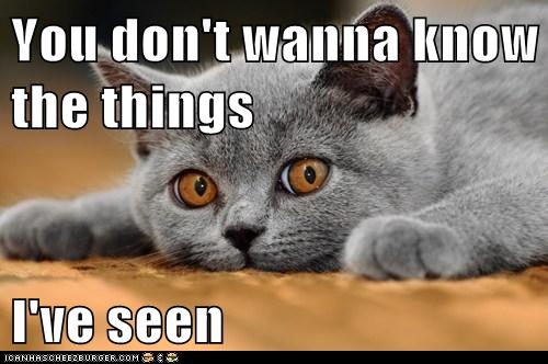 You Don T Wanna Know The Things I Ve Seen Lolcats Lol Cat Memes Funny Cats Funny Cat Pictures With Words On Them Funny Pictures Lol Cat Memes Lol Cats